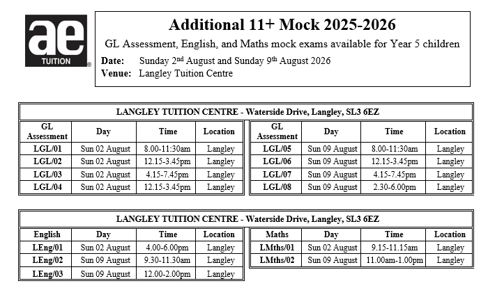 The mock examinations will take place at our Langley tuition centre.